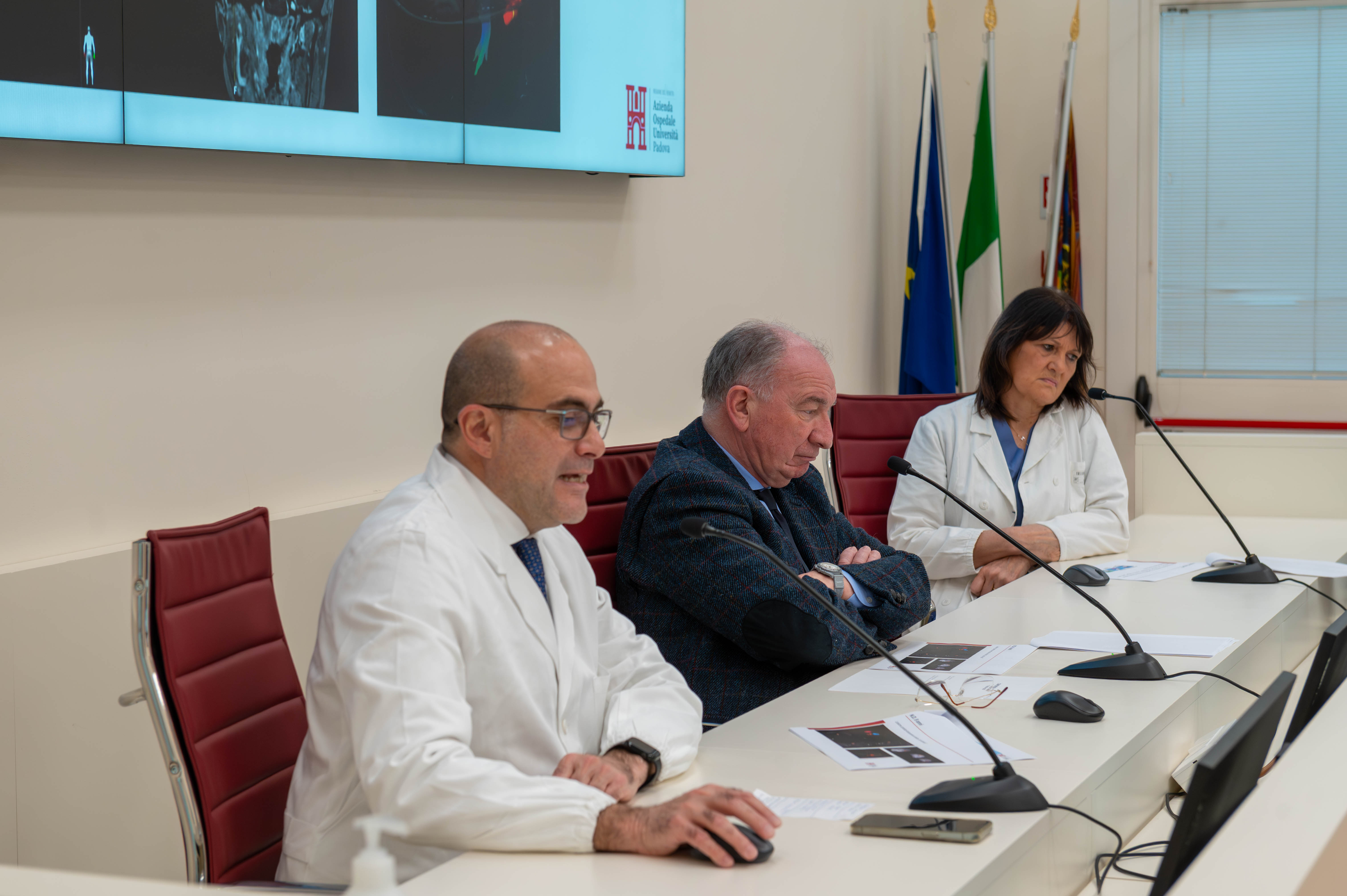 In Azienda è stato eseguito il primo intervento di neurochirurgia pediatrica con paziente sveglio: in sala operatoria il prof. Luca Denaro, direttore UOC Neurochirurgia Pediatrica e Funzionale, e la dott.ssa Marina Munari, direttore UOC Anestesia e Rianimazione OSA.