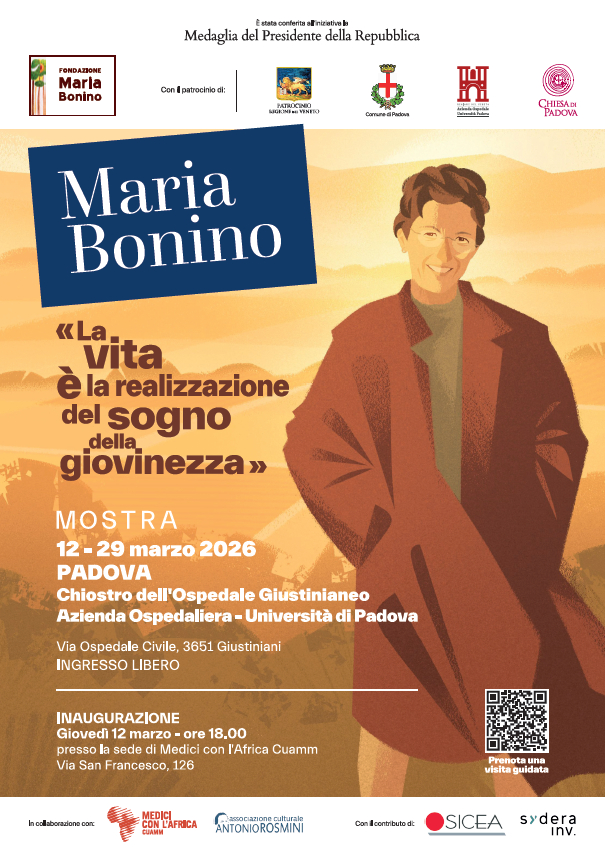 Dopo aver iniziato il suo percorso a Biella, città natale della pediatra Maria Bonino, e aver fatto tappa ad Aosta, Roma, Milano e Verona, la mostra “Maria Bonino. La vita è la realizzazione del sogno della giovinezza” approda a Padova, proprio nella città di Medici con l’Africa Cuamm, l’organizzazione con cui Maria ha condiviso una parte fondamentale del suo impegno professionale e umano.